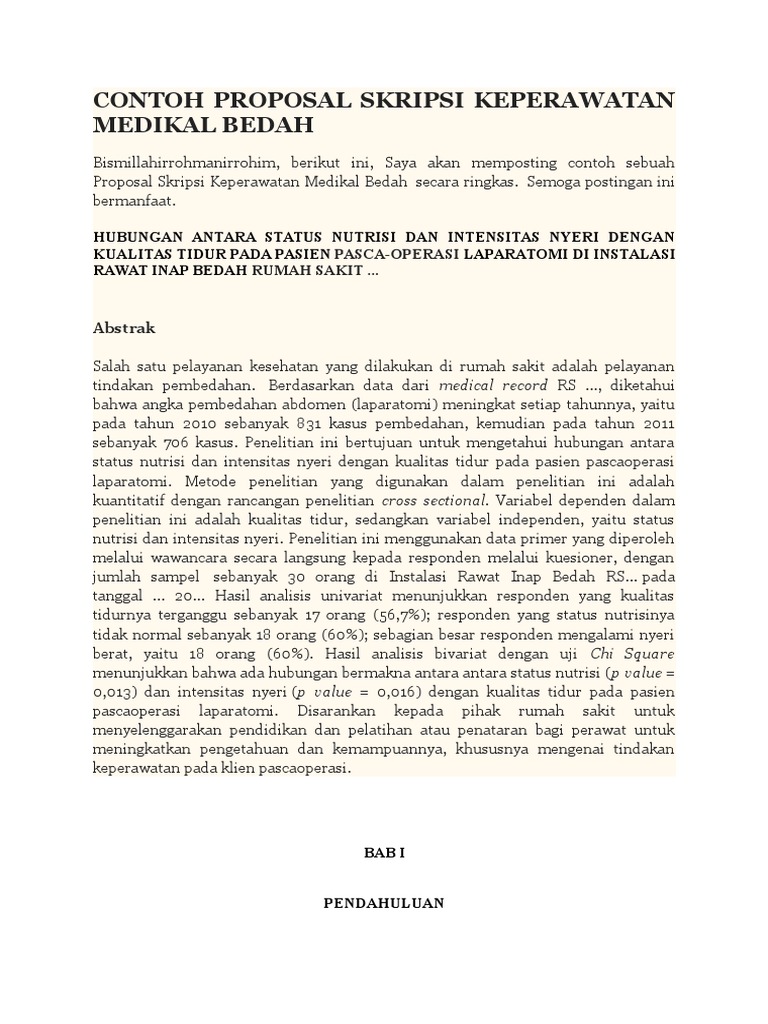 Contoh Proposal Skripsi Keperawatan Medikal Bedah