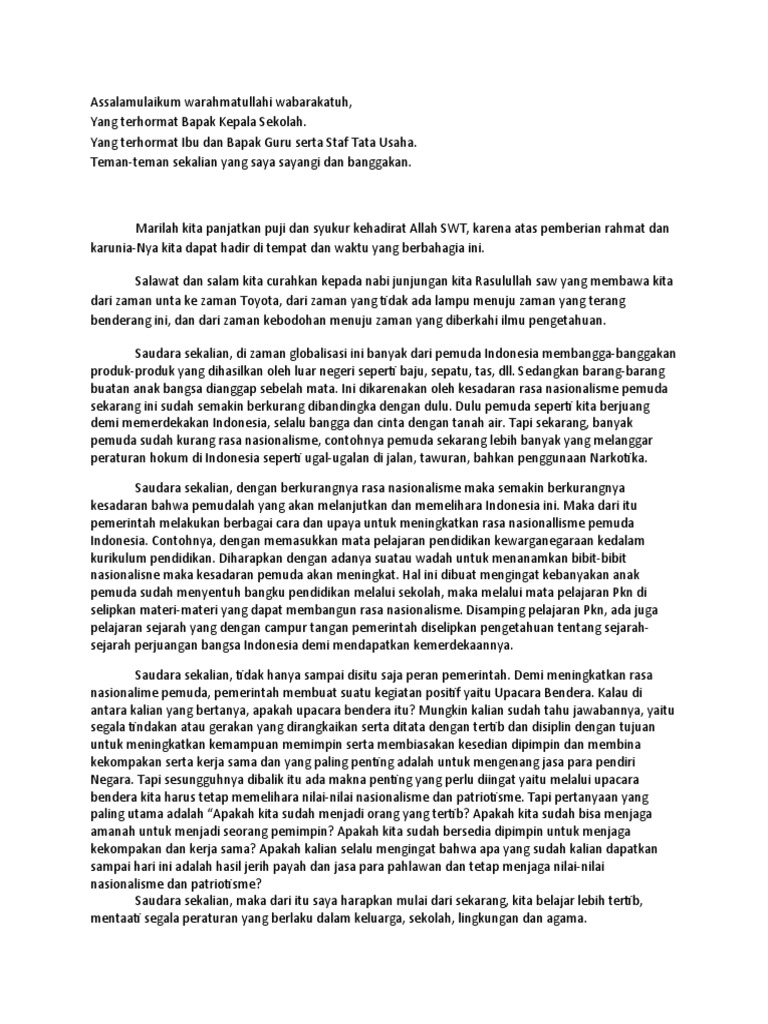 Contoh Pidato Nasionalisme Contoh Soal Dan Materi Pelajaran 8. 56576603 Contoh Pidato Mengenai Nasionalisme Pelajar. Berdirinya saya di depan kalian tiada lain hanya.