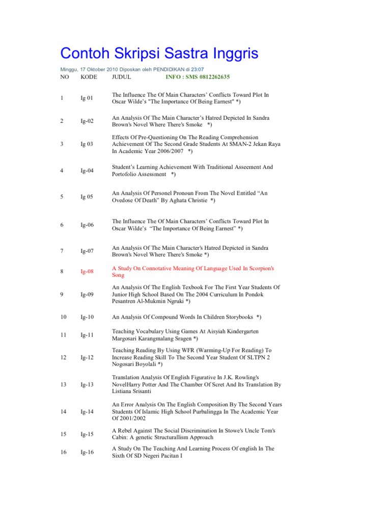 Contoh Skripsi Sastra Inggris Indonesian Language English Language