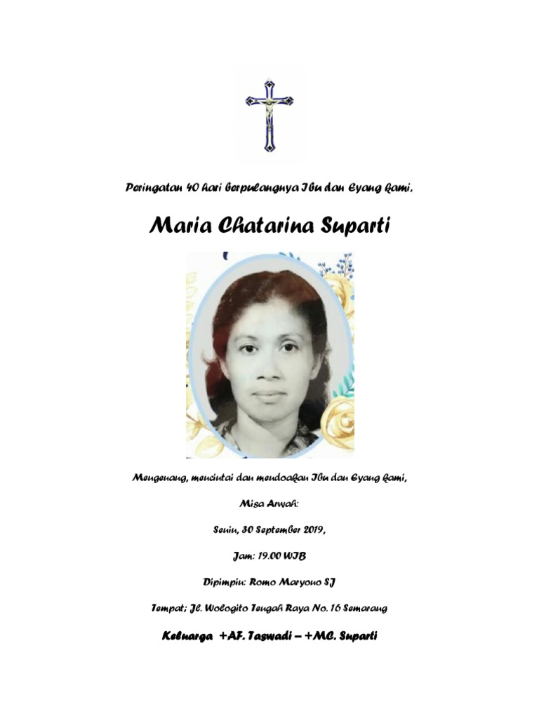 Gereja Katolik menghargai budaya setempat dan menganjurkan agar adat istiadat umat beriman diintegrasikan dalam liturgi Gereja. Undangan Kirim Doa Jadi 2. Contoh Undangan Orang Meninggal Download Undangan 40 hari meninggal kristen.
